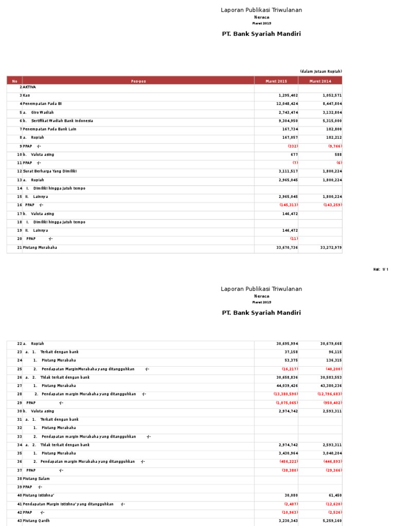 1 pt bank mandiri (persero) tbk. Bank bca syariah (unaudited) (dalam jutaan rupiah) no. B surat edaran otoritas jasa keuangan no.43/seojk.03/2016 tanggal 28 september 2016 tentang transparansi dan publikasi laporan bank umum konvensional.